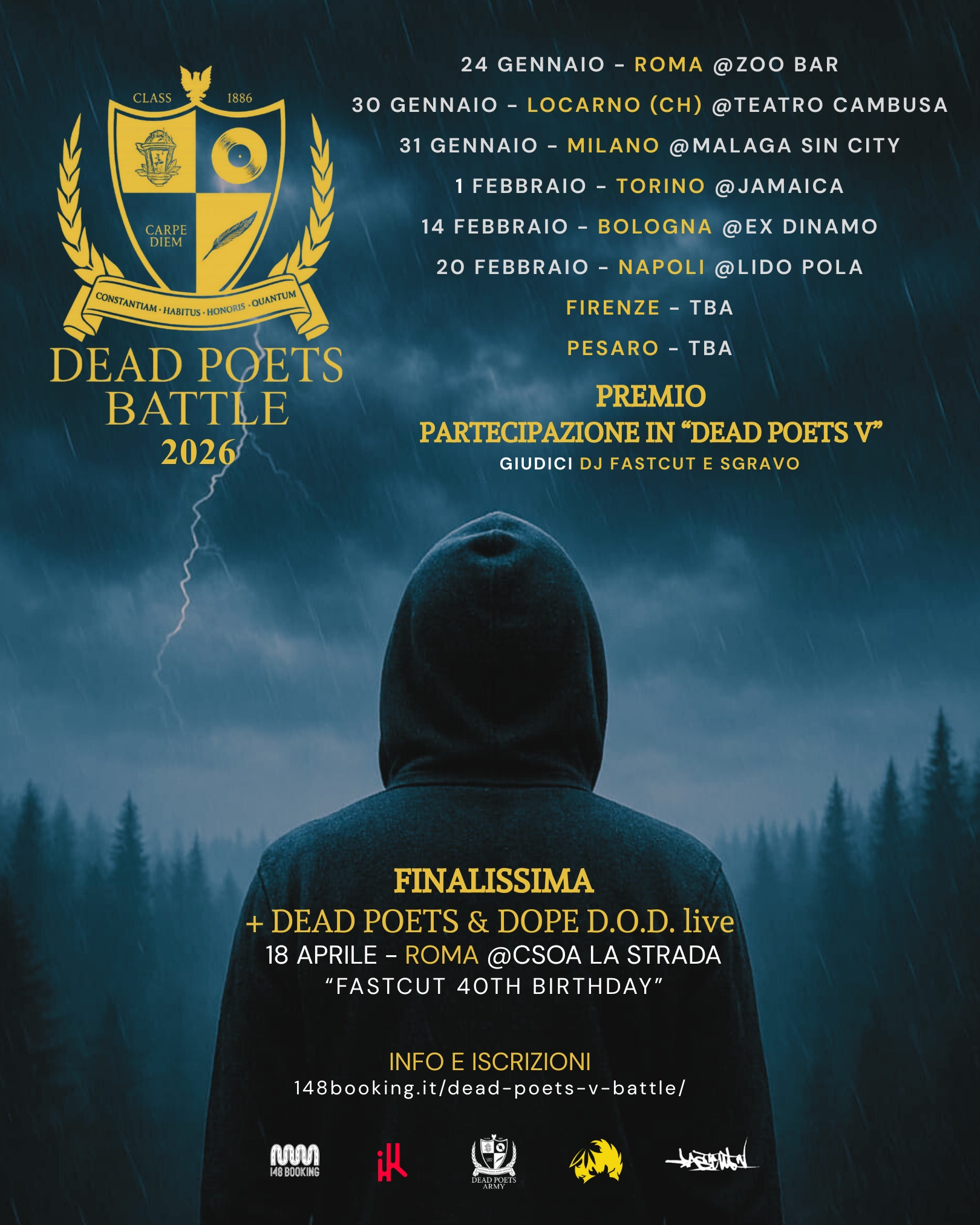 In ogni città, un solo vincitore conquisterà l’accesso alla finale e la possibilità di partecipare ufficialmente al nuovo album “Dead Poets 5”, che segnerà il ritorno discografico del collettivo e il decennale del progetto.